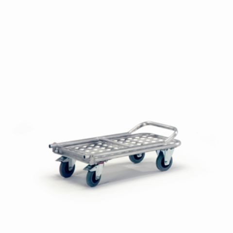 Die Magazinwagen mit Klapp-Schiebebügel haben eine Ladefläche aus Aluminium-Riffelblech